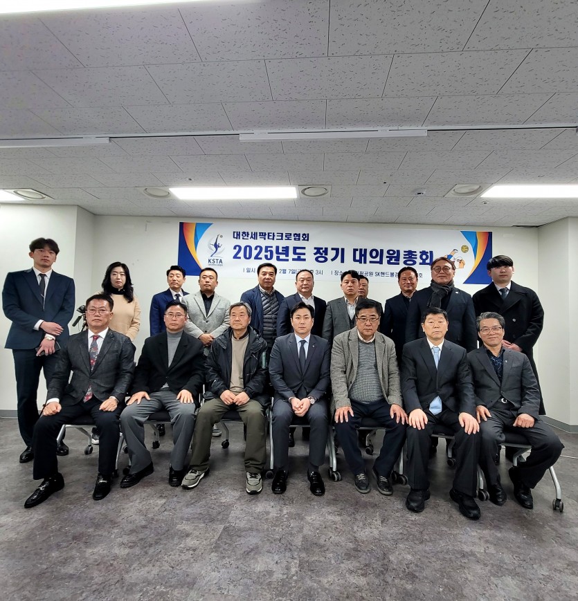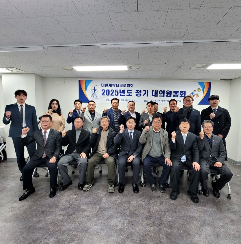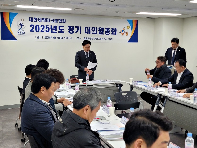 회 의 명 : 2025년도 정기대의원총회회의일시 : 2025년 2월 7일(금) 15시회의장소 : 올림픽공원 SK핸드볼경기장 103호 회의실성원여부 : 대의원 17명 중 15명 참석으로 성원보고사항1. 감사 보고2. 2025년도 사업계획 보고3. 2025년도 예산 보고심의사항1. 2024년도 사업결과의 건2. 2024년도 결산의 건3. 정관 개정의 건4. 임원 선임의 건5. 감사 선임의 건6. 스포츠공정위원회 구성의 건